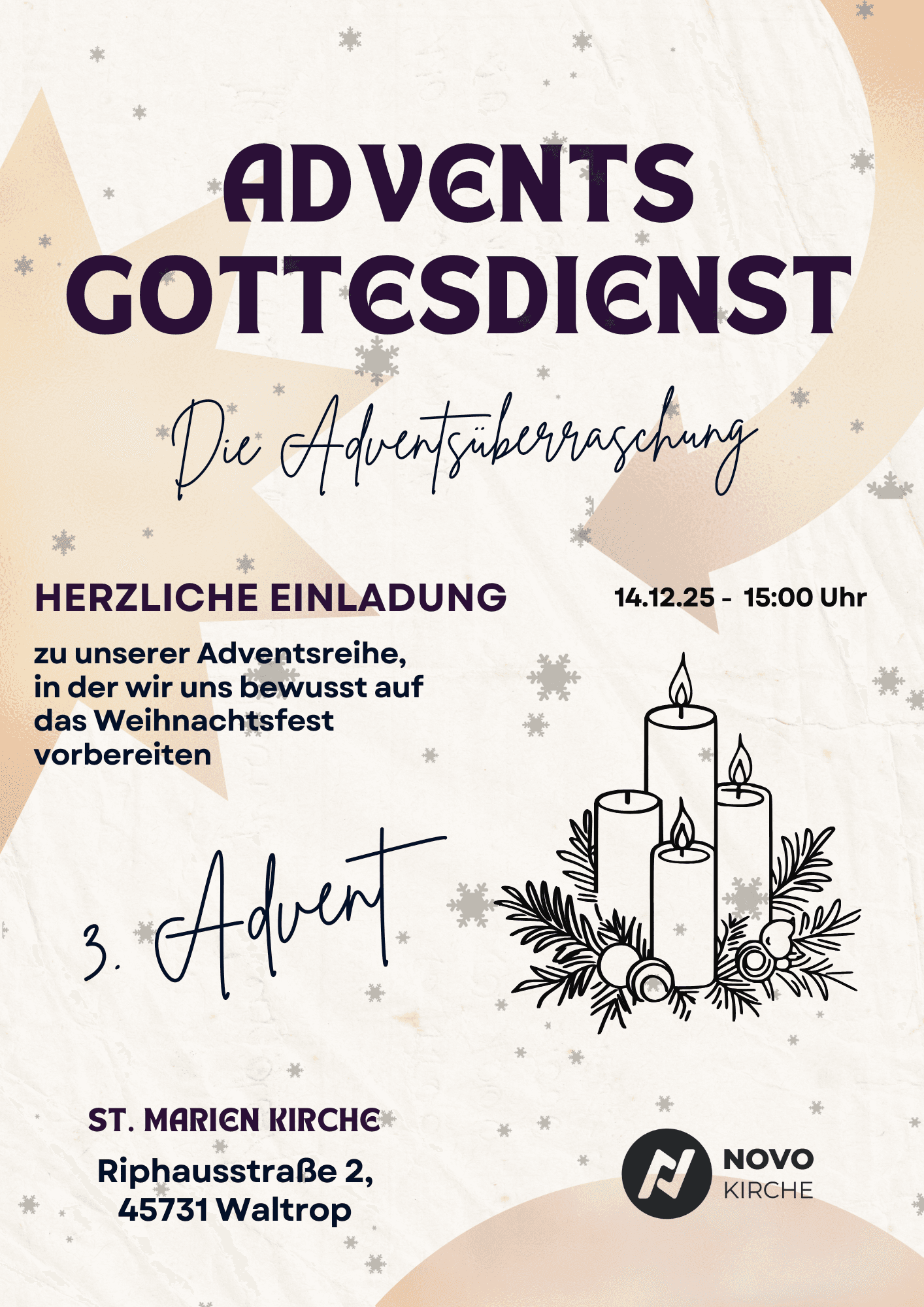 So schön, dass Du den Advent mit uns feiern möchtest! Damit wir den Gottesdienst für alle so angenehm wie möglich vorbereiten können, freuen wir uns über eine kurze Info zur Platzplanung.